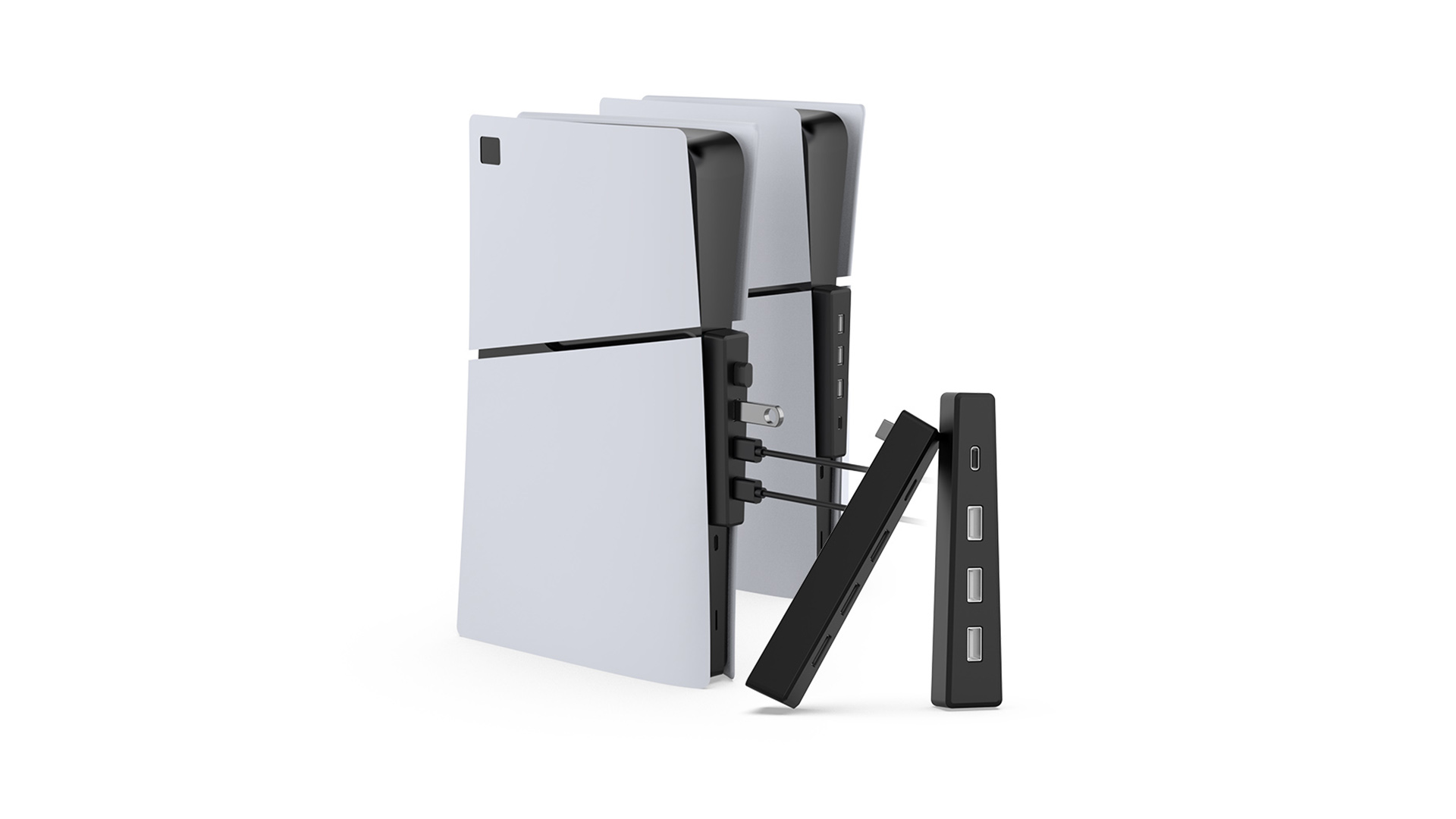- Seamless Integration with PS5 Slim: Tailored for both the disc and digital editions of the PlayStation 5 Slim, our USB hub boasts a flawless fit. Its design ensures full compatibility without hindering any console functions. Effortlessly extending connectivity, it features 3 USB 2.0 ports alongside a Type-C 2.0 port, all anchored via a stable, shake-free Type-C connection.