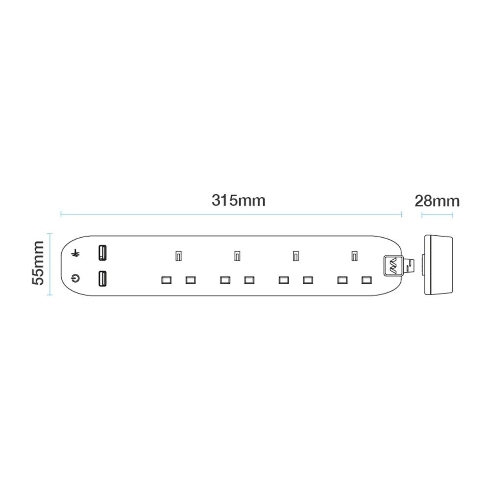 Nexus Masterplug 4 Gang + 2 USB (2.1) Switch Extension Lead USB Power (SRGU42N)