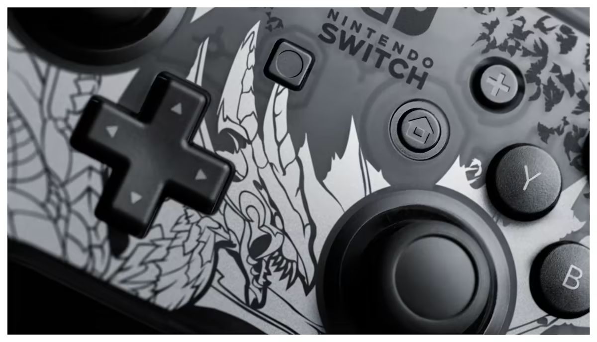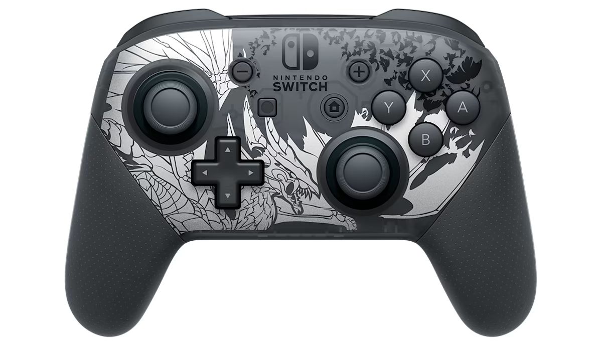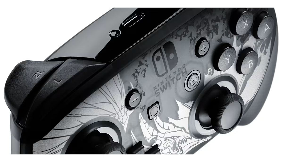 Embrace the dark side of the hunt with the Nintendo Switch™ Pro Controller featuring art inspired by the mysterious elder-dragon, Malzeno, from the action-RPG expansion Monster Hunter Rise: Sunbreak.