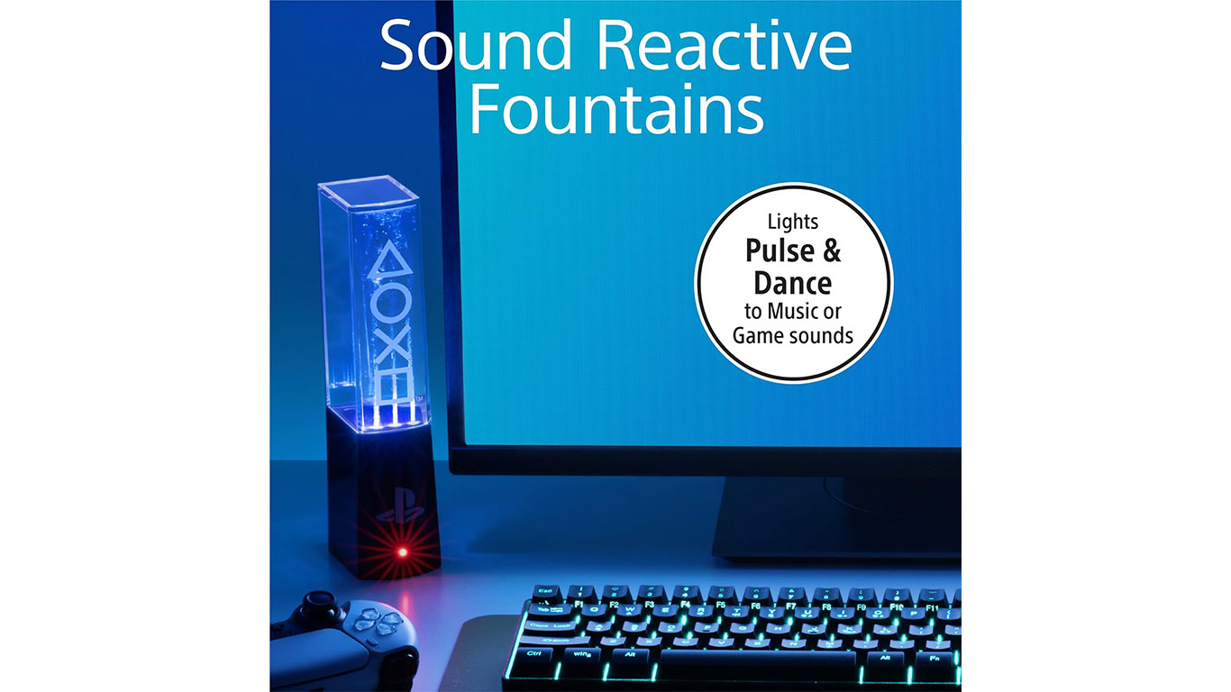 - Sound-Reactive Fountains: Elevate your gaming experience with these Playstation Liquid Dancing Lights that are sound-reactive. The lights pulse and dance in sync with your music or game sounds.