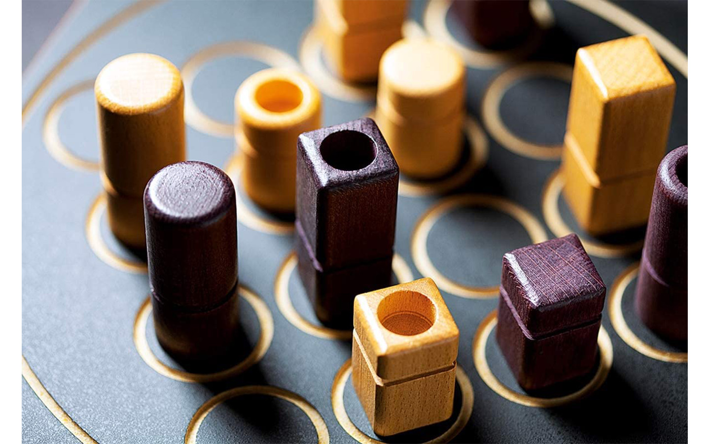 Each of the 16 pieces has 4 different attributes. The aim is to line up 4 pieces which share the same attribute. The problem is you can't choose which piece you're going to play your opponent chooses for you.