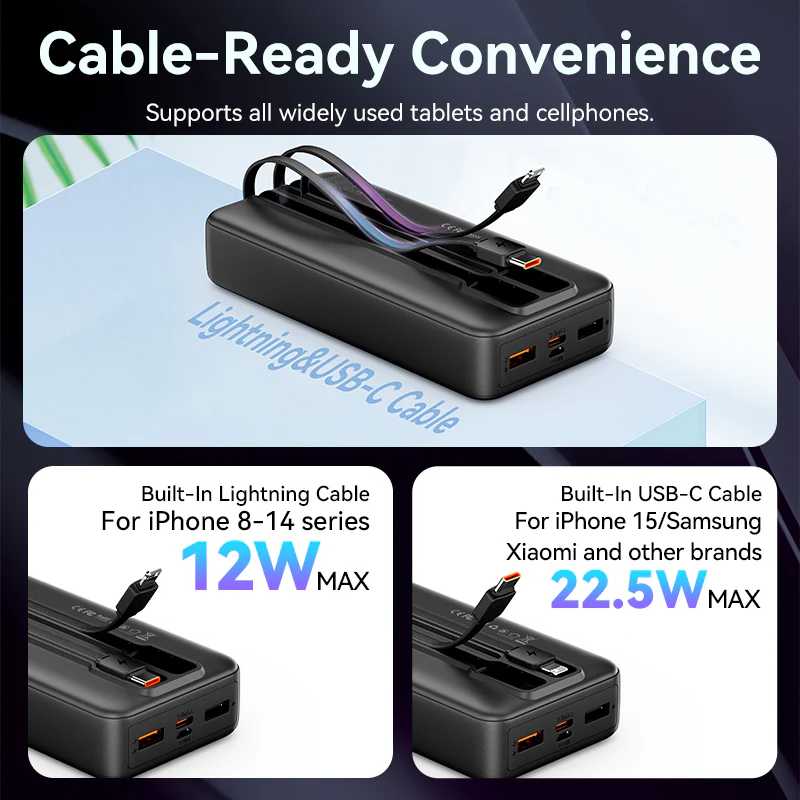 Built-in USB-C and Lightning Cables